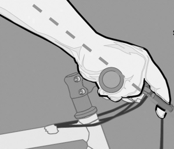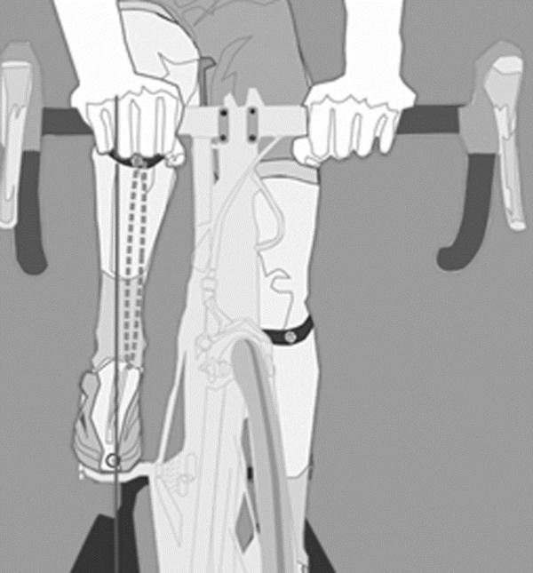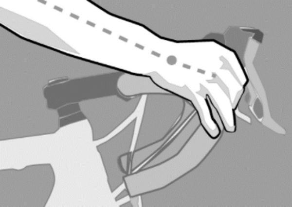 从肘部到指尖应该呈一条直线,如果在骑行过程中觉得很难保持的话,可能是自行车部件的位置有问题,观察并调整一下自行车,确保各个部件的位置都适合自己。