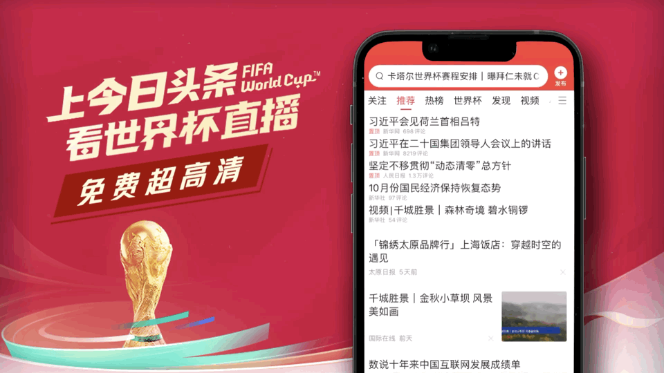 本届世界杯是历史上第一次在北半球冬季举办的世界杯,也是梅西、C罗、莫德里奇等球星职业生涯的最后一战。届时,今日头条还将推出“我最期待的世界杯对决”“我最爱的球星”等互动征文活动,期待大家参与。