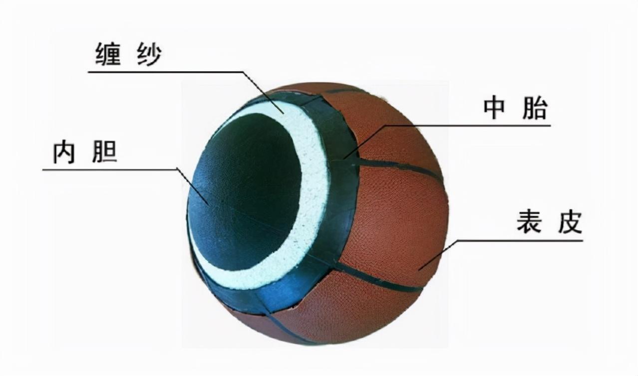 B.内胆由橡胶制成,是篮球的最里层,也是篮球弹力的根源。