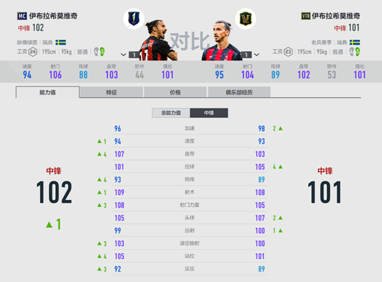 FIFA ONLINE 4最近推出的MC和VTR两个赛季当中,都有超强版本的伊布登场,超大模型+无敌户口,小编在此不再多言,主要给大家分析下两张卡的小差别。MC赛季的总评和终结略胜一筹,可以说是当前最强伊布;而VTR赛季卡在组织传球上做的更好,还有不错的战术意识可以协助前场逼抢、压迫后卫。无论如何选择,强力毋庸置疑,买他!!!