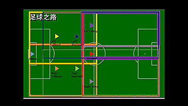 下面将逐一给大家讲解,首先从左后卫开始,他的责任区域在场地的左侧,稍微越过右侧一点,仅几码的距离 ,不会完全跑到右侧协防。