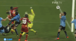 10年世界杯,加纳对乌拉圭队的比赛在足球界是少有的对错分明的比赛。在全场苏亚雷斯频频浪费机会后,加纳在加时赛最后时刻掀起凌厉的攻击波,苏亚雷斯先后两次在门线上扑出来球,第一次用脚封堵,第二次却是直接手球。苏亚雷斯当即吃到红牌下场。