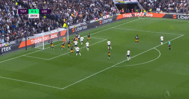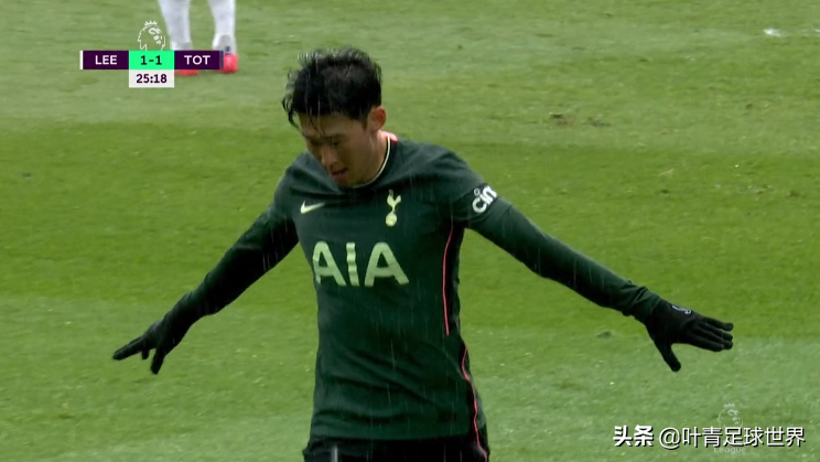 第25分钟,佩里西奇将右侧角球开到禁区,利兹联门将把球打出随后被撞倒,凯恩拿球挑过后卫右脚凌空抽射破门,热刺1-1利兹联。
