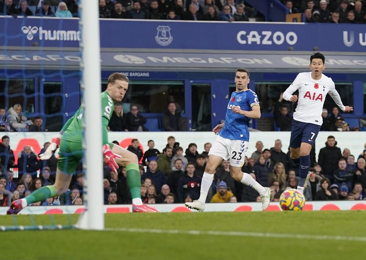 第51分钟,凯恩近距离打门被挡出后,本-戴维斯禁区外远射得手,热刺再度扳平2-2。
