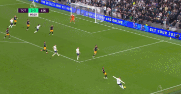 第63分钟,理查利森送出直塞,库卢前插到禁区左侧左脚低射,皮球打偏。第76分钟,利兹联打出快速反击,罗卡在前场斜塞,罗德里戈接球进入禁区左侧左脚抽射远角破门,利兹联3-2热刺。