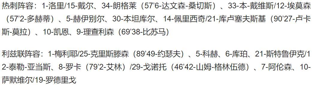 最终,全场比赛结束,热刺在一场跌宕起伏的大战中4-3逆转了利兹联。