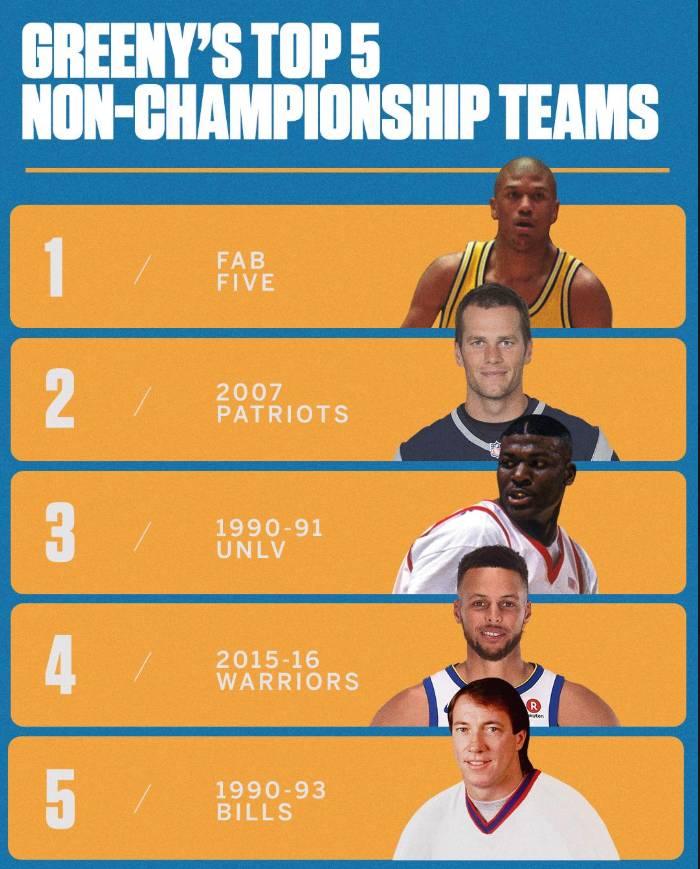 直播吧8月14日讯 今日,美记在推特上评选出了五大具有超强夺冠实力却错失冠军的球队。其中,2015-16赛季的金州勇士队位列第四。