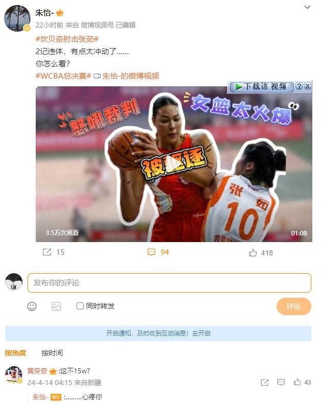 对此,此前因对布莱德索伸脚有绊人、踢人动作而被罚款15万元的新疆球员黄荣奇表示:“这不15万?”