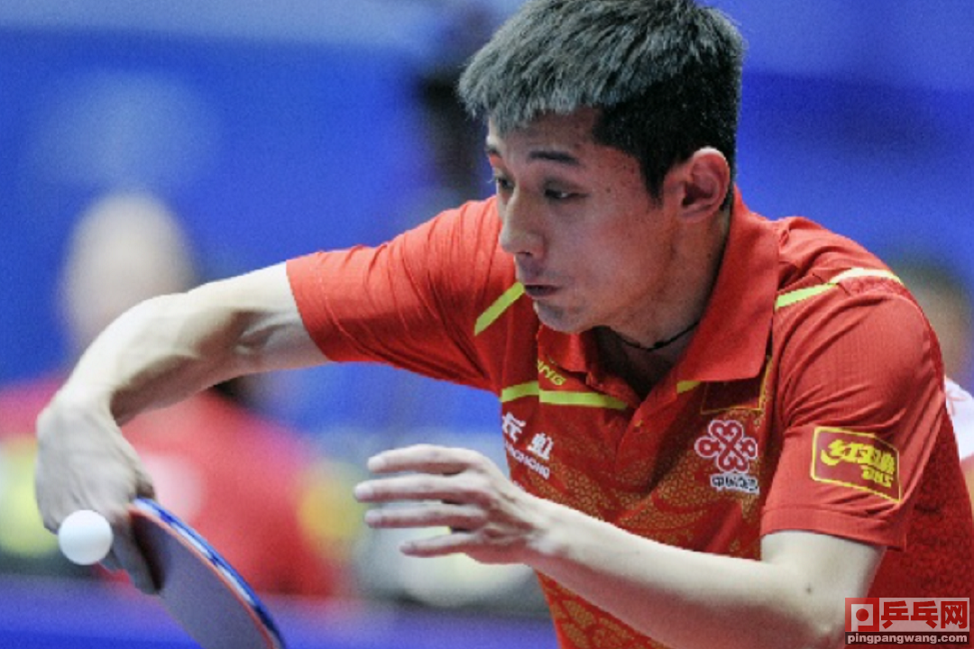 马龙发球,张继科摆短,马龙再摆,张继科反手拧拉下网,12-11。