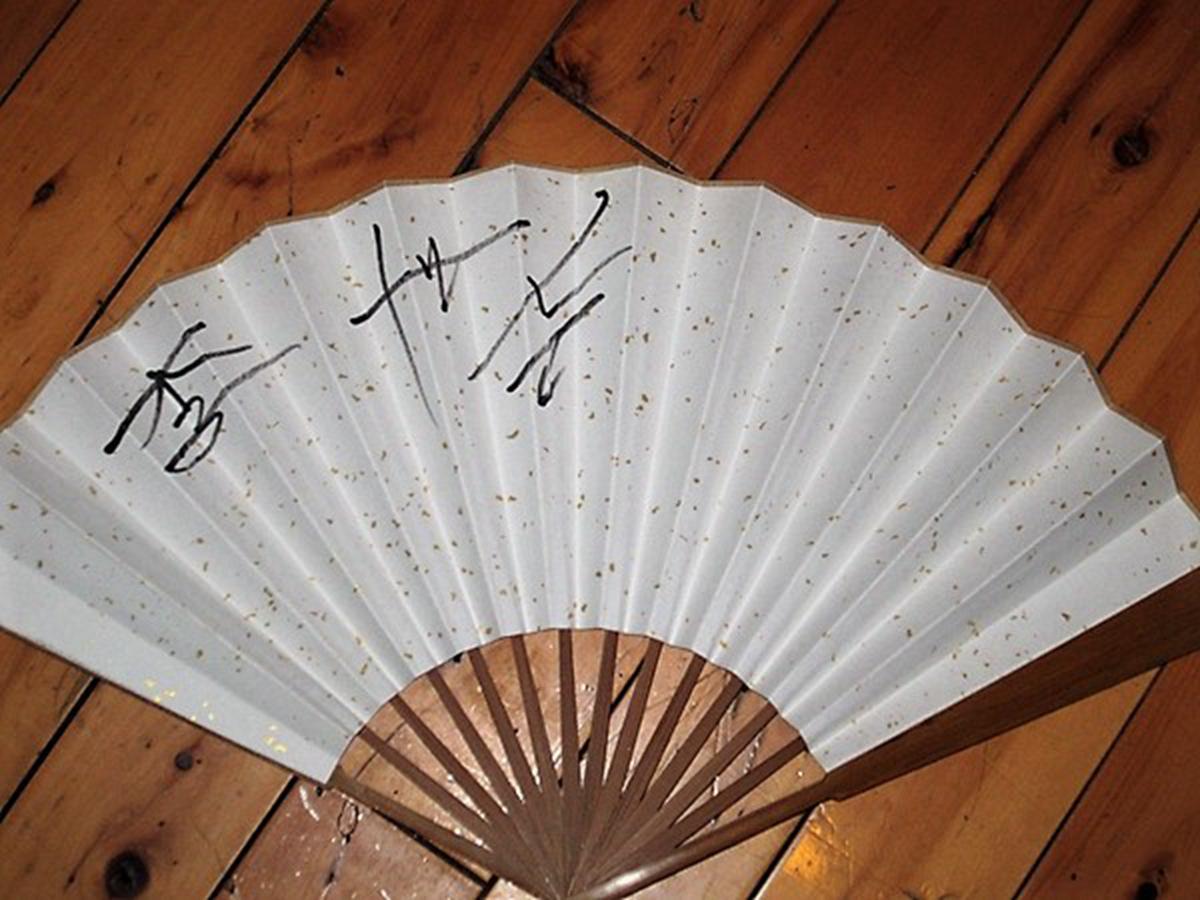 李世石为笔者签的扇子,记者当时递给李世石一捆7、8把扇子,李世石不声不响全签了,现在回想起来有些冷汗