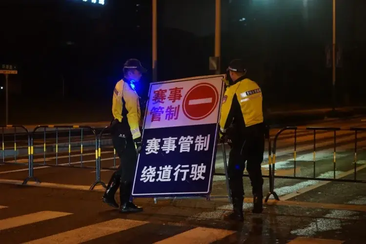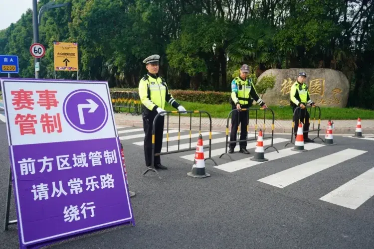 当天一早,全市公安机关1200余名警力准时到岗到位,在赛道70个路口和沿线分段实施交通管控、引导分流人群。