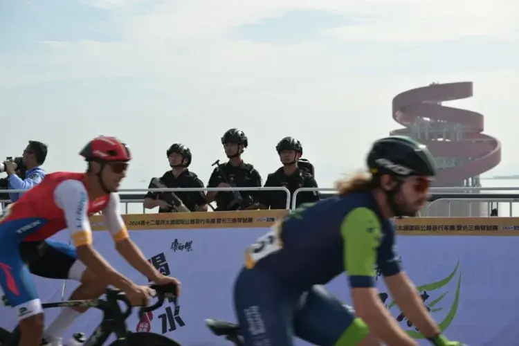 赛道沿途,无锡公安严格落实各项安保措施提醒观众文明观赛,对“黑飞”无人机快速反制,时刻守护、全程在线,让每一个奋力追逐的身影平安前行。