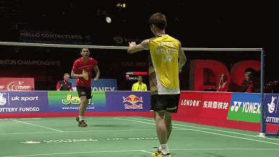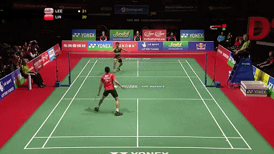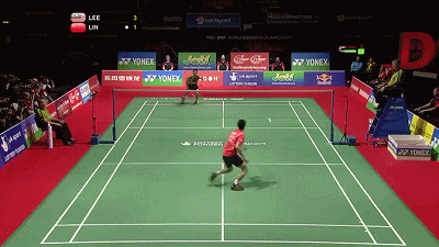 林丹予以还击,利用推底线制造机会,一拍重杀得分。
