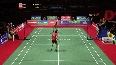 随后林丹挑球出界,李宗伟拿到第2个冠军点;林丹利用一个高质量的放网,逼迫李宗伟挑高球,林丹又一个重杀,追至21平,如下图: