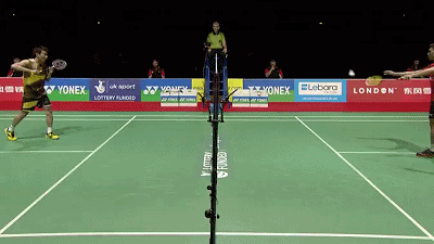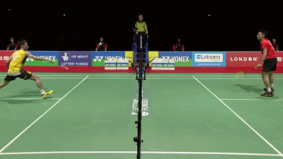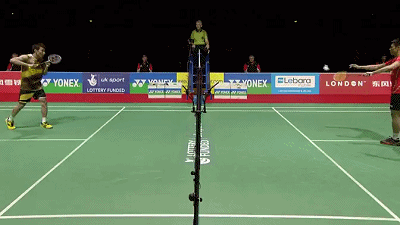 之后双方的进攻更加犀利,见高就杀,比分也是难分上下。8平之后,林丹的进攻奏效,连得2分领先。特别是下面这颗球,林丹杀上网扑球得分,打的淋漓尽致。