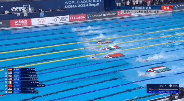 今年2月,世界泳联锦标赛男子4x100米自由泳接力决赛中,由潘展乐、季新杰、张展硕、王浩宇组成的中国队以3分11秒08的成绩夺冠。潘展乐在接力赛中以46秒80打破打破了罗马尼亚选手波波维奇在2022年欧锦赛上创造的男子100米自由泳世界纪录(46秒86)。
