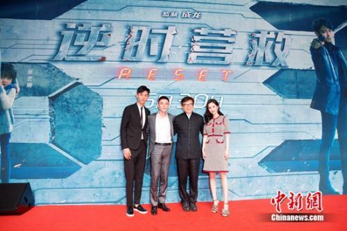 中新网北京6月26日电(记者 张曦)25日,科幻动作电影《逆时营救》在北京举行首映礼,监制成龙携主演杨幂、霍建华、刘畅、张艺瀚参加。活动上,杨幂和霍建华不仅现场掰手腕,还让成龙当裁判。在杨幂掰赢霍建华之后,“不敢相信自己眼睛”的成龙也加入PK,令现场笑声不断。