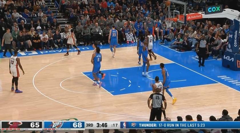 雷霆这边直到亚历山大投进三分再止住得分荒!