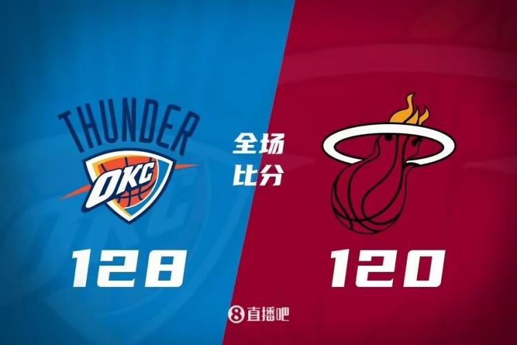 开场后热火外线手感火热连连命中三分,他们早早取得两位数领先,雷霆依靠冲击内线紧咬比分,第二节两队大打对攻战,雷霆也逐渐打出自己的节奏。易边再战,雷霆延续火热的手感,热火则是效率有所下降,雷霆趁机反超比分。末节上来雷霆一波13-0的高潮将比分拉开,虽然热火暂停调整找回进攻节奏但也未能追上比分,最终雷霆128-120逆转热火。