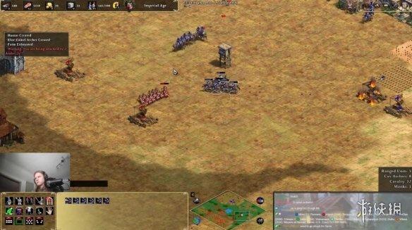 另一方面,Rubenstock 则是专注在微控策略,持续以骆驼弓骑骚扰,甚至派村民闯进 Andre 的农田「打劫」。没错,Rubenstock 派村民点击 Andre 的农田并采集,逃不掉的就自杀,尽可能的降低 Andre 的收获资源。