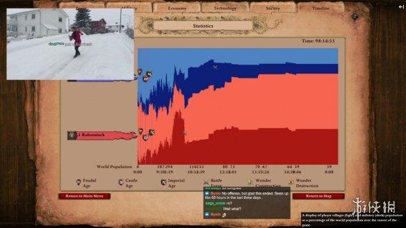 不过值得一提的是,《帝国时代2》游戏时间 Normal 为现实时间的 1.7 倍速,因此两位玩家现实的比赛时间为 58.1 小时左右。