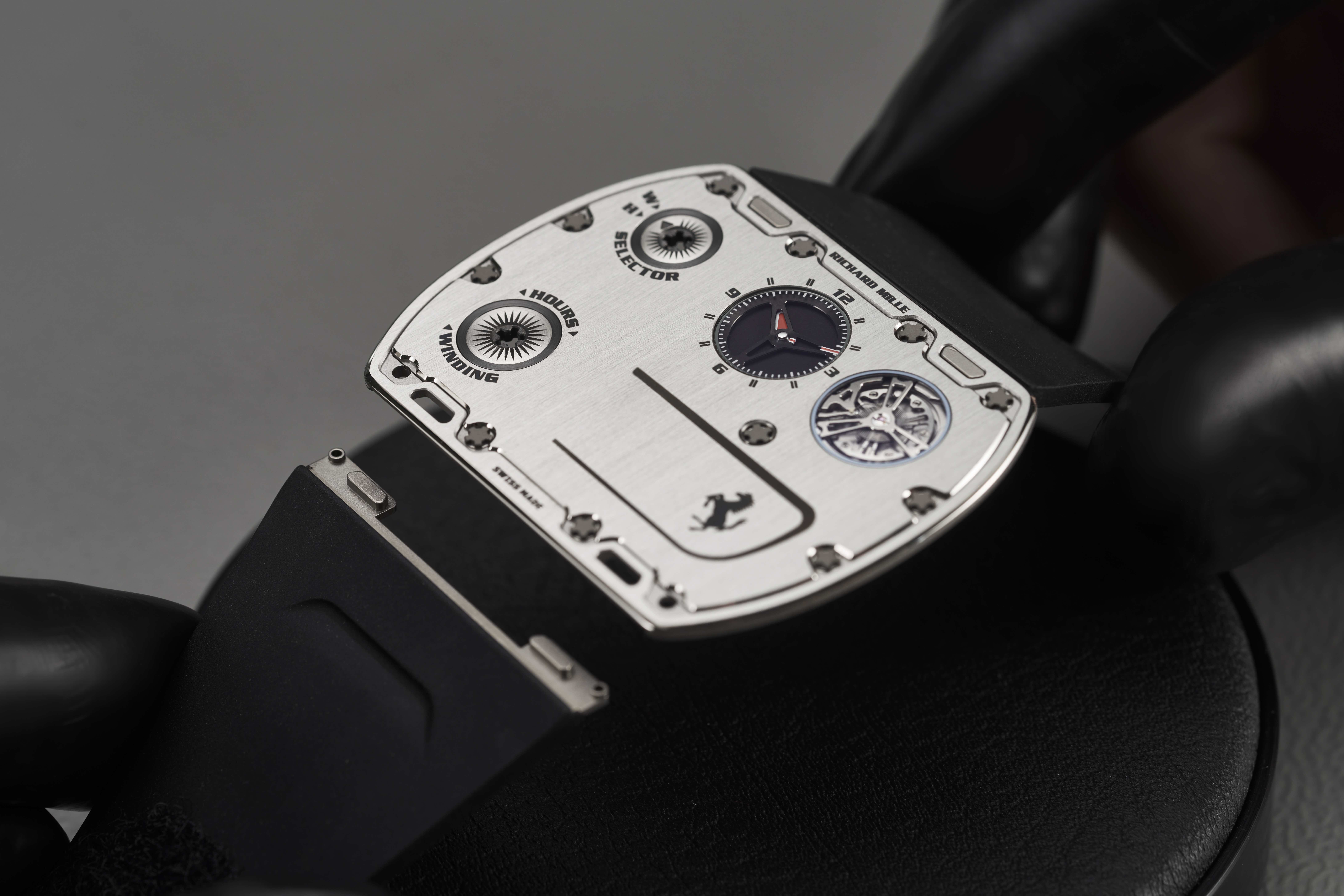 这块腕表充分体现了顶级车队与高级制表商合力突破极限、打破常规的精神。据悉,理查米尔与法拉利团队在研发与实验室测试中投入了超过6000小时,并经历了数十个腕表原型,最终才向市场扔下了RM UP-01腕表这枚“重磅炸弹”,引发市场热议。