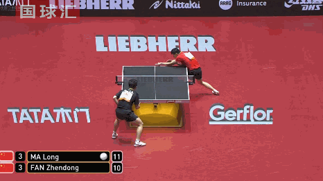 波尔逆旋转发球,马龙正手抢冲斜线,波尔反手快撕,马龙再拉出界,11-10。