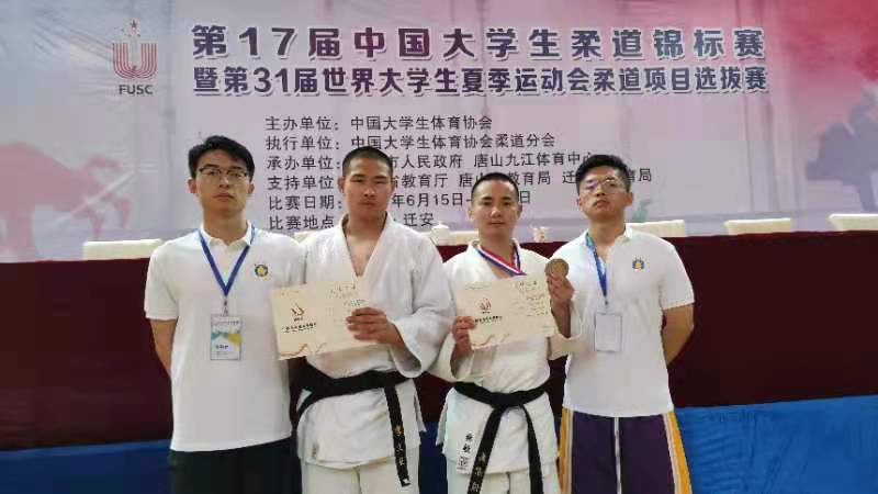 云南财经大学柔道队闫纯浩(左二)荣获男子甲组100公斤级第五名