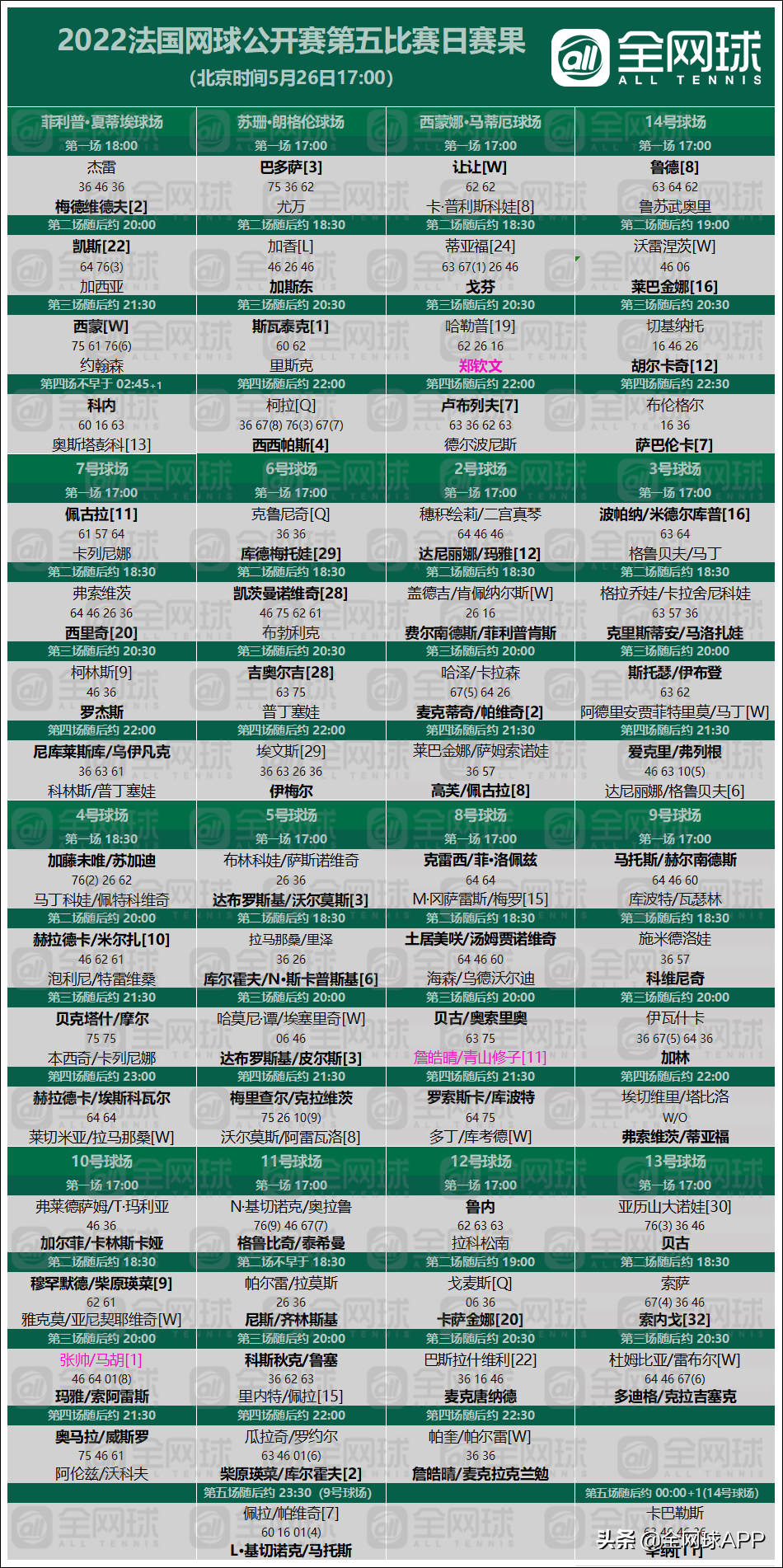(文:王菲、Geoge、牛奶君,赛果、签表:牛奶君,赛程:王菲,图:视觉中国)