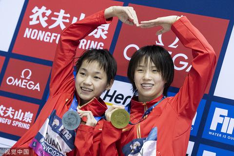 10月22日,德国柏林,2022跳水世界杯柏林站,陈芋汐、全红婵包揽女子10米台冠亚军。(视觉中国)