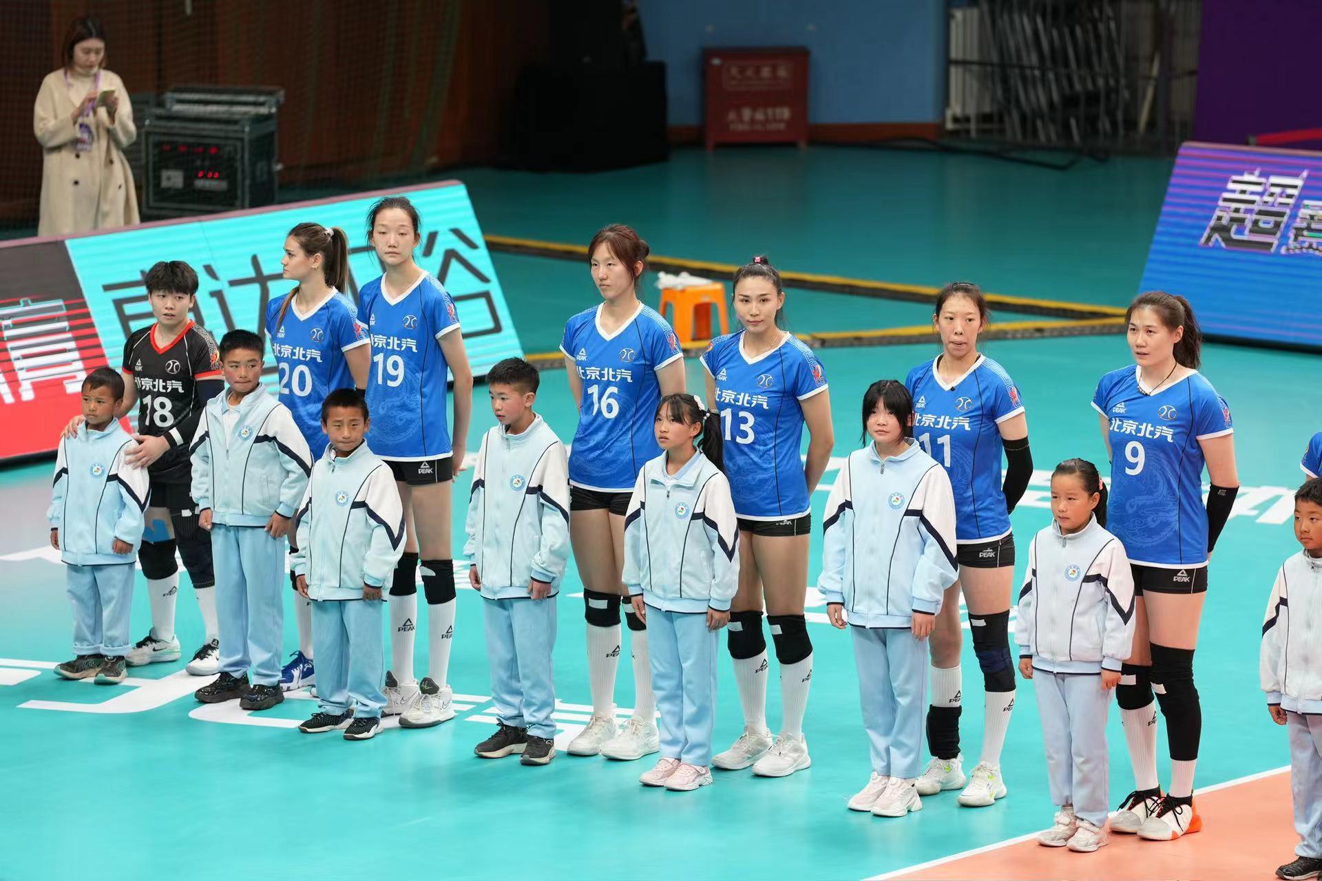 7日晚的比赛结束后,光爱学校的孩子再次来到场地中间,与北汽女排的队员们合影。站到熟悉的大姐姐们身旁,孩子们的脸上又一次绽放出开心的笑容。