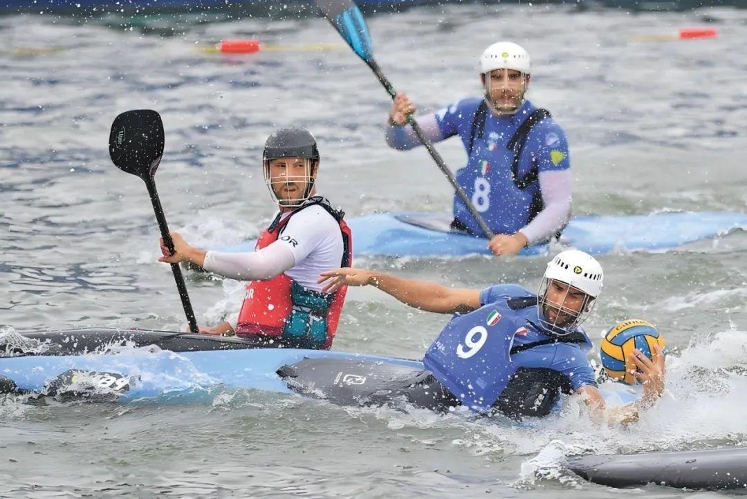 2024年国际皮划艇联合会“杭州超级杯”皮艇球项目比赛,参赛选手在比赛中。姚颖康 摄
