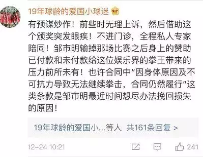 除此之外,我们得到不愿透漏姓名的知情人士给到的消息称:此前检查出邹市明肩部有伤,经纪公司建议接受手术,但冉莹颖却没有接受建议而是让邹市明参加了综艺节目。另外,在某次国内比赛的前一周左右时间,冉莹颖还要邹市明参加某综艺节目。