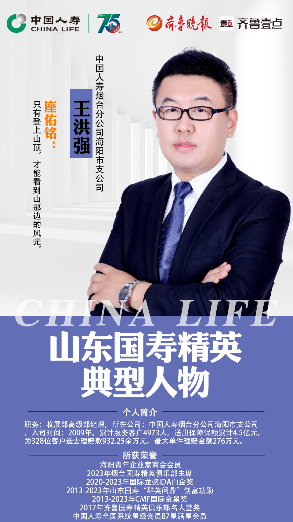 对王洪强而言,保险已经不仅仅是一份简单的事业,更是一份责任和使命。成为一名有情怀、有温度的保险人,将是他的终身追求。