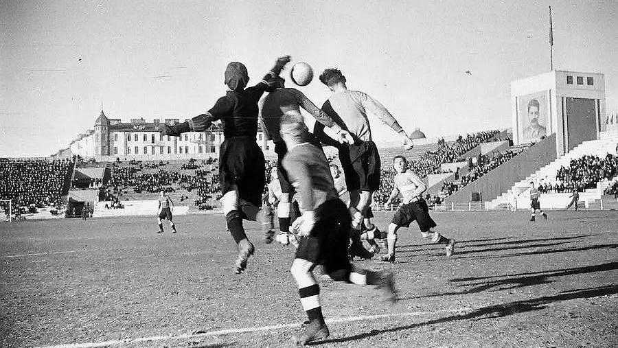 1942年,基辅已经在德军的控制之下,德军组建了一个足球联盟,不仅组建德军足球队,而且要基辅人民也组建足球队,最后当然是展开一场“激烈的”足球赛战胜他们,这一招不仅能获得精神上的胜利,还能宣扬一股“亲善”的风气,向外展示在德军的管理下基辅是多么的其乐融融。