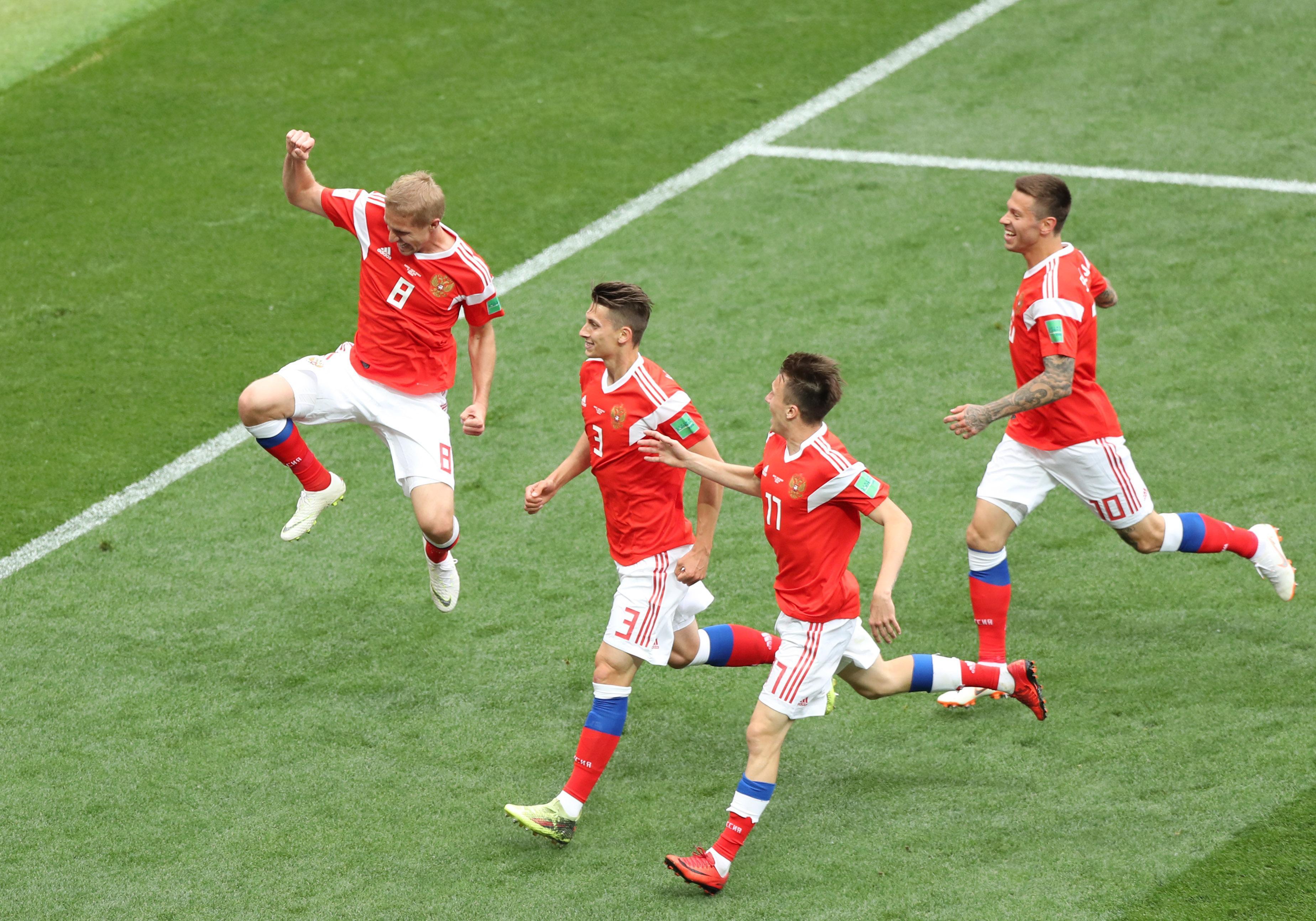 开赛仪式上,德国队队员立正跺脚并伸出右臂高喊“嗨!……”,这时全场都看着“面包房”队的队员,只见他们也立正伸出右臂,可是在同一时刻他们“啪”的一声拍在胸脯上,用俄语高喊“体育”,那些被排挤在后方的观众们见此情景无不欢声雀跃。