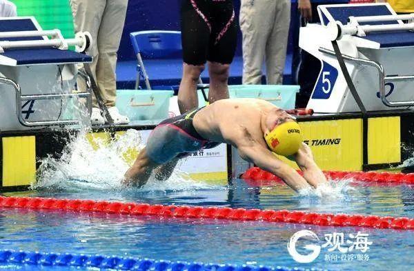在男子200米自由泳比赛中,汪顺再次获得一枚金牌。