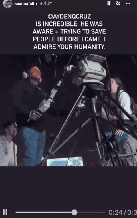 但Seanna知情,她捉住身边的一个男生,求对方将她拉了起来。随后,她颤颤巍巍看到附近的摄影脚架,迅速爬上去希望摄影师能够帮忙,喊特拉维斯或者主办方暂停一下,救救已经快被踩死的人。