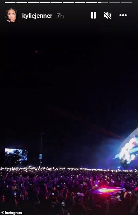 这场演唱会上,特拉维斯不仅准备了火爆的表演,怀二胎的女友凯莉·詹娜和女儿Stormi也来到了现场。凯莉还在演唱会开始前上传了坐在远处观看的照片。