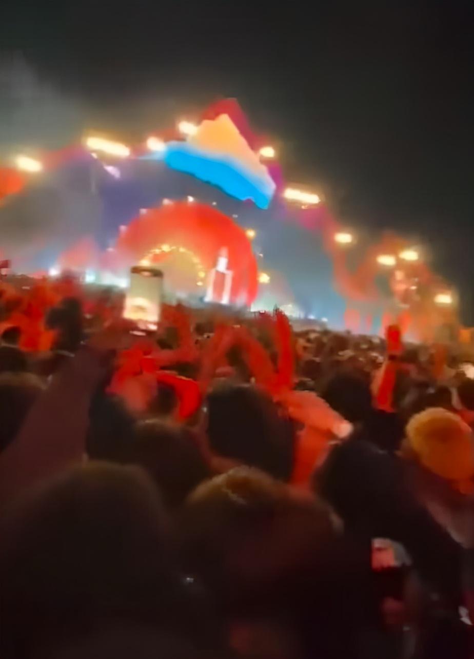 晚九点,特拉维斯在万众期待中出场,一下点燃了观众的热情。音乐声一起,狂欢的人群立刻疯狂挤向前方舞台,站在最靠近舞台护栏的观众们,瞬间像大海中被收网的沙丁鱼,贴挤在一起。