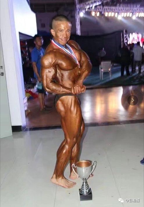 王禾就是这样打了整整两年专业赛。2013年,王禾在海南三亚“封王” ,拿下职业生涯第一个全国健美比赛冠军。以个人身份参赛的王禾,成了当年健美圈的最大黑马。出道就超过40岁的他,被圈内戏称“老黑马”。