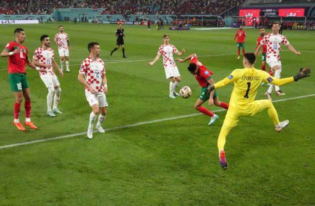 第75分钟,摩洛哥传中,克罗地亚后卫漏顶,利瓦科维奇惊险化解阿马拉直面球门的机会。