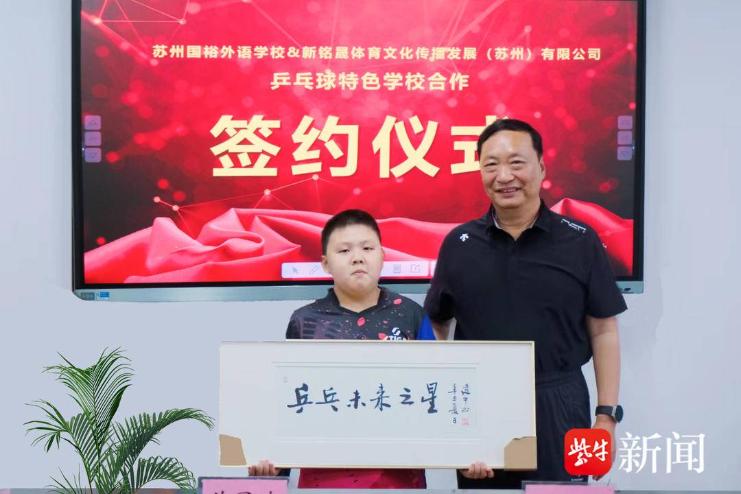 国家少年队队员赵昱博将在今年9月入读苏国外小学四年级,他将带领更多小学生爱上乒乓球运动。现场,学校领导对赵昱博赠字表示了深深的祝福。