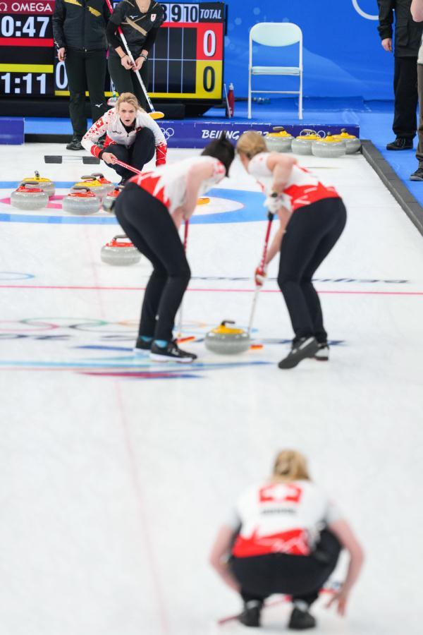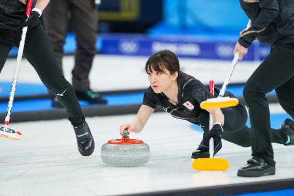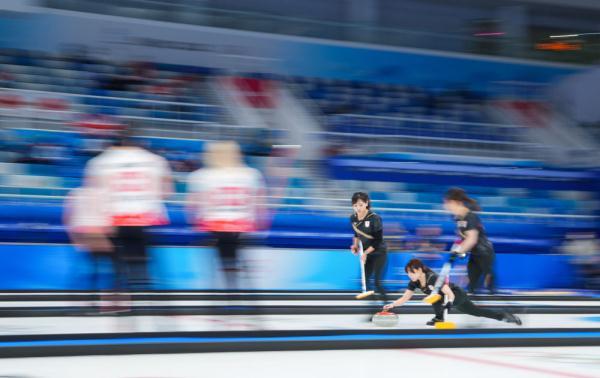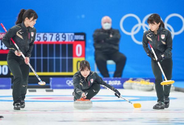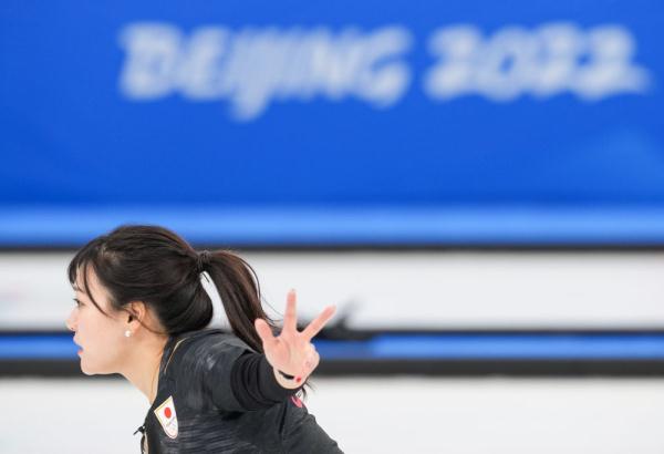 2月18日,在北京国家游泳中心“冰立方”举行的北京2022年冬奥会女子冰壶半决赛中,日本队以8比6战胜瑞士队,晋级决赛。
