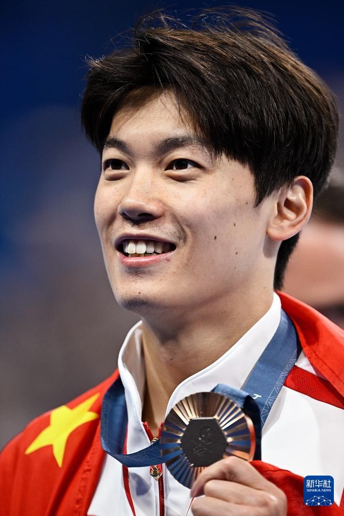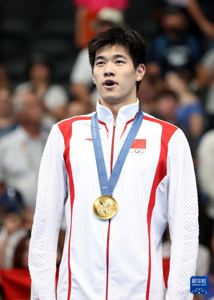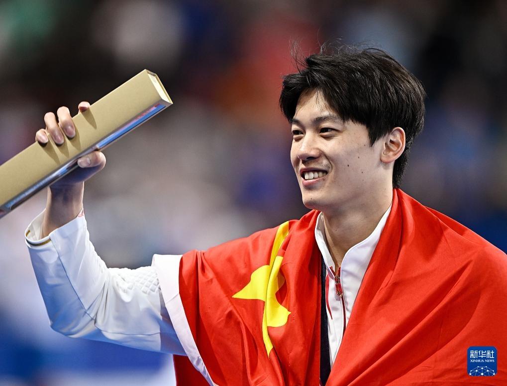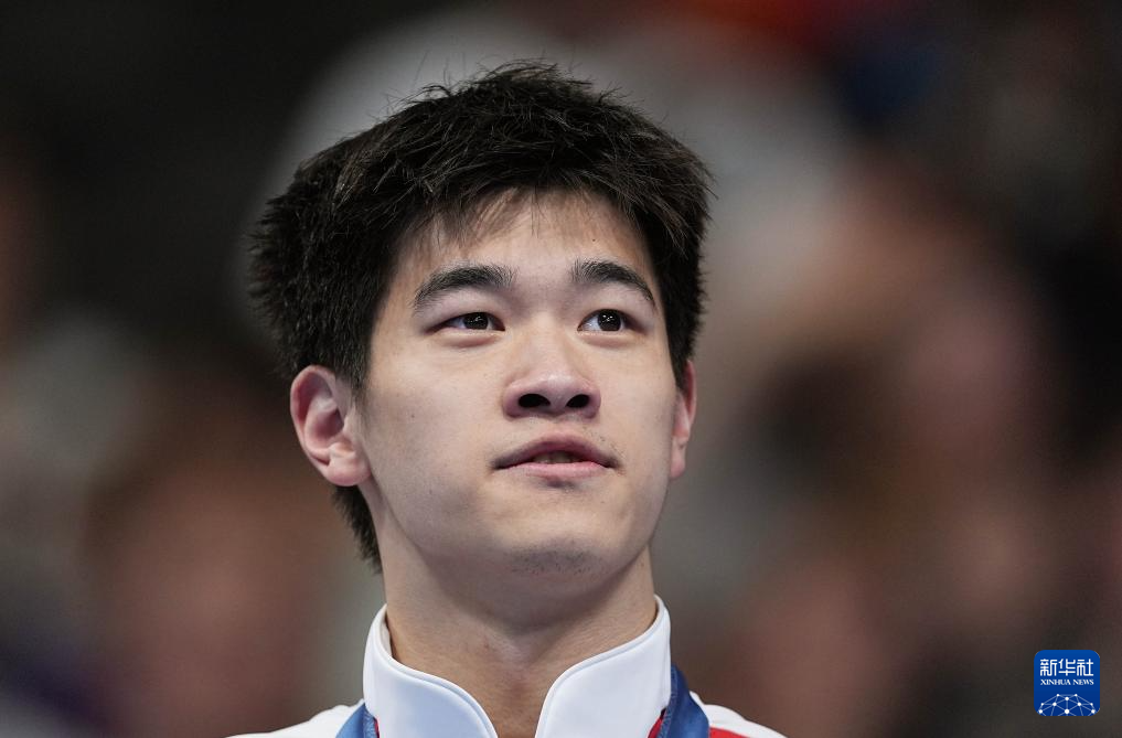 7月31日,中国选手潘展乐在颁奖仪式上。新华社记者 雒圆 摄