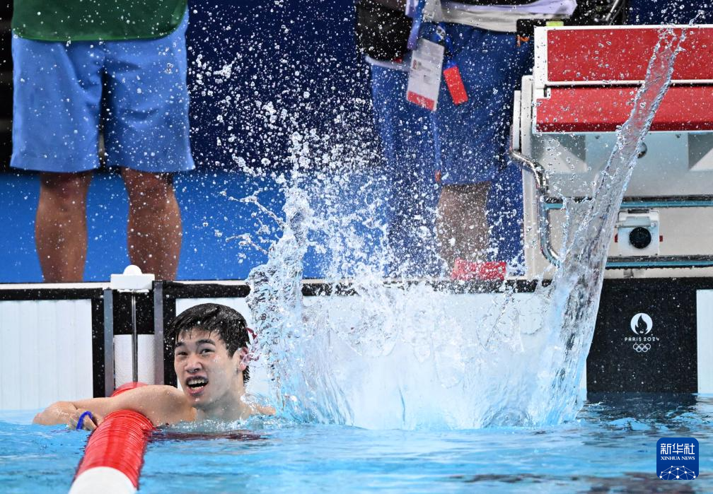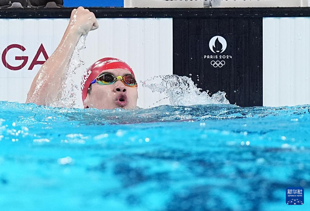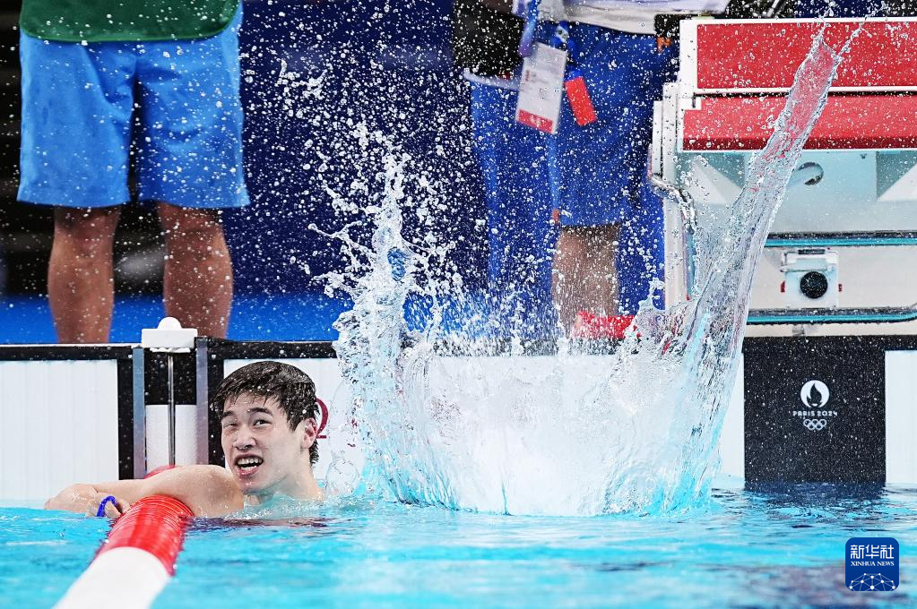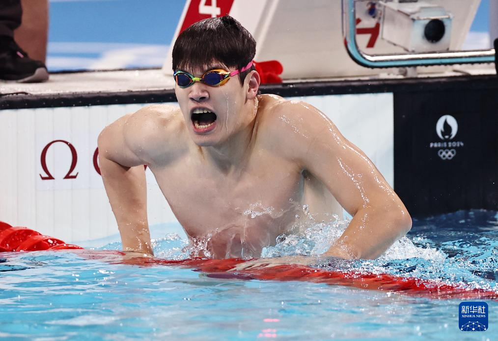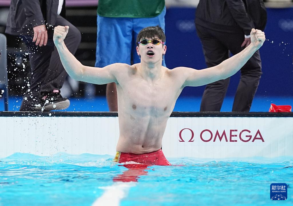 7月31日,中国选手潘展乐在比赛后庆祝。新华社记者 夏一方 摄
