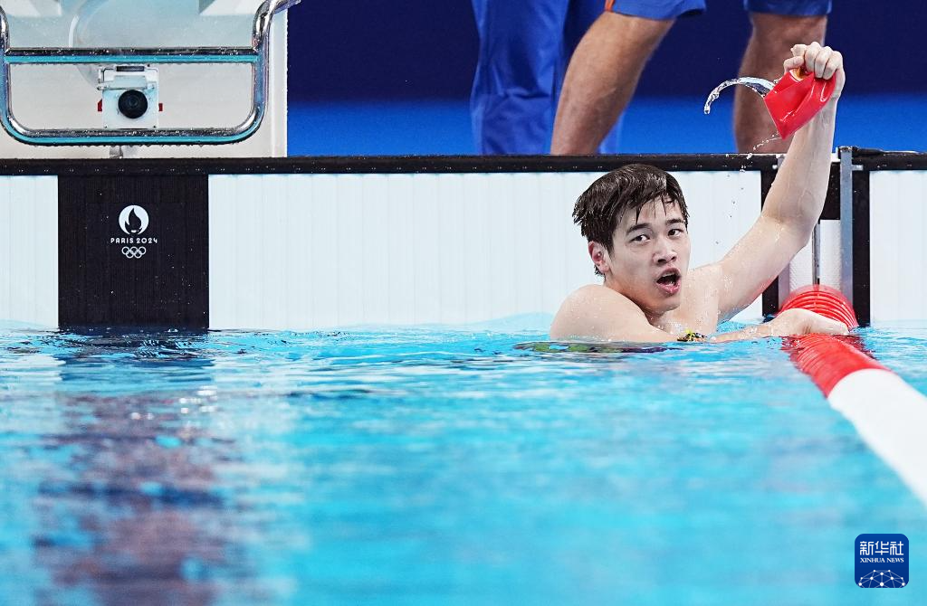 7月31日,中国选手潘展乐在决赛后。新华社记者 夏一方 摄