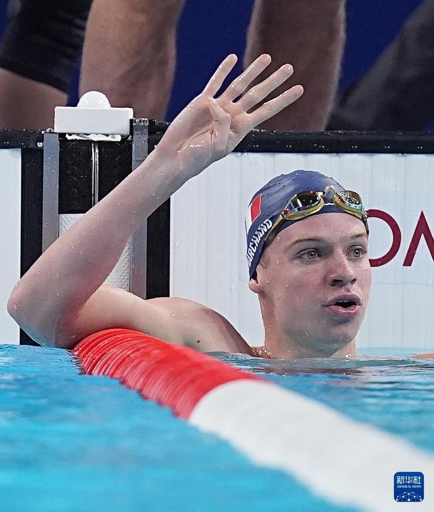 当日,巴黎奥运会游泳项目男子200米个人混合泳决赛在拉德芳斯体育馆举行。