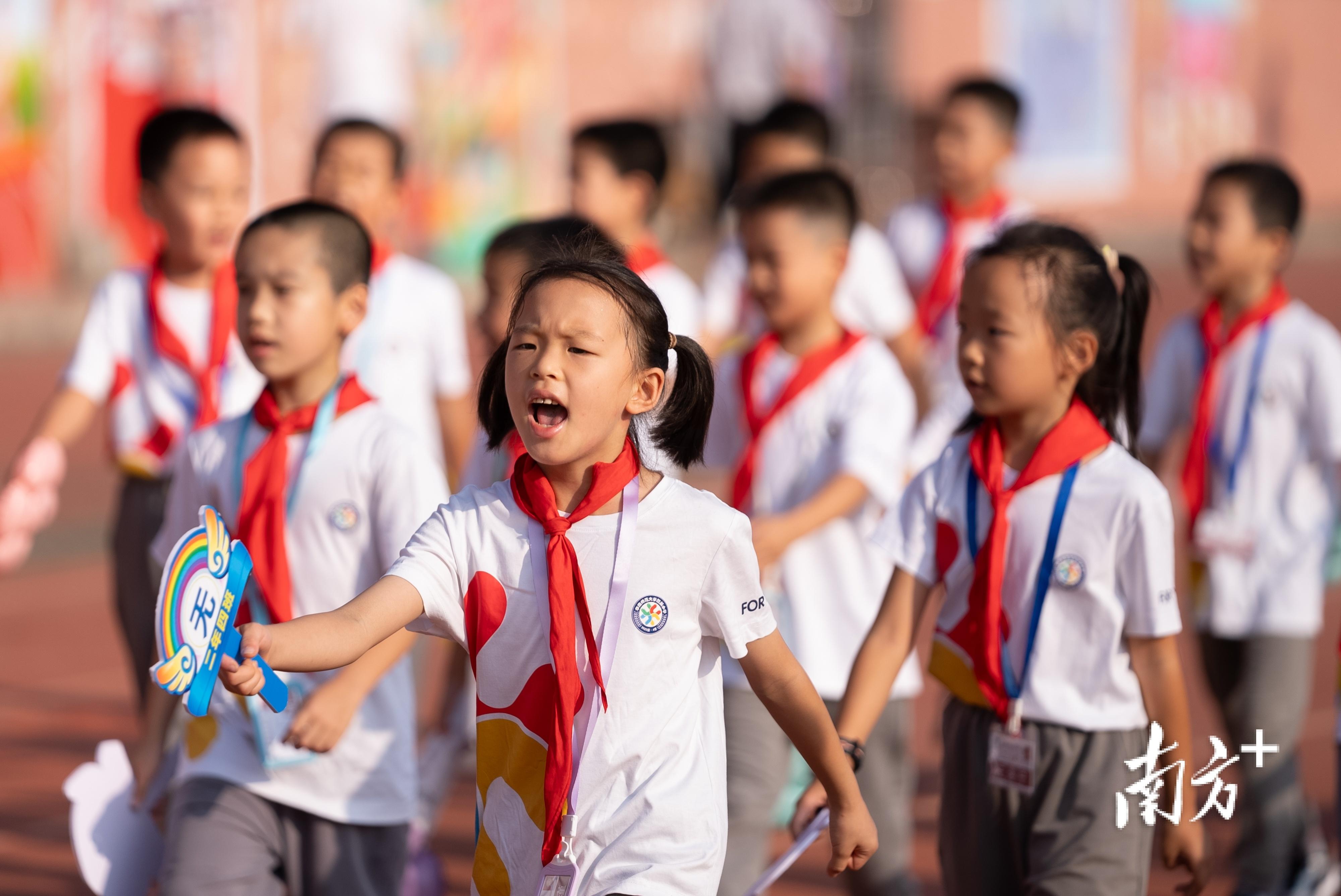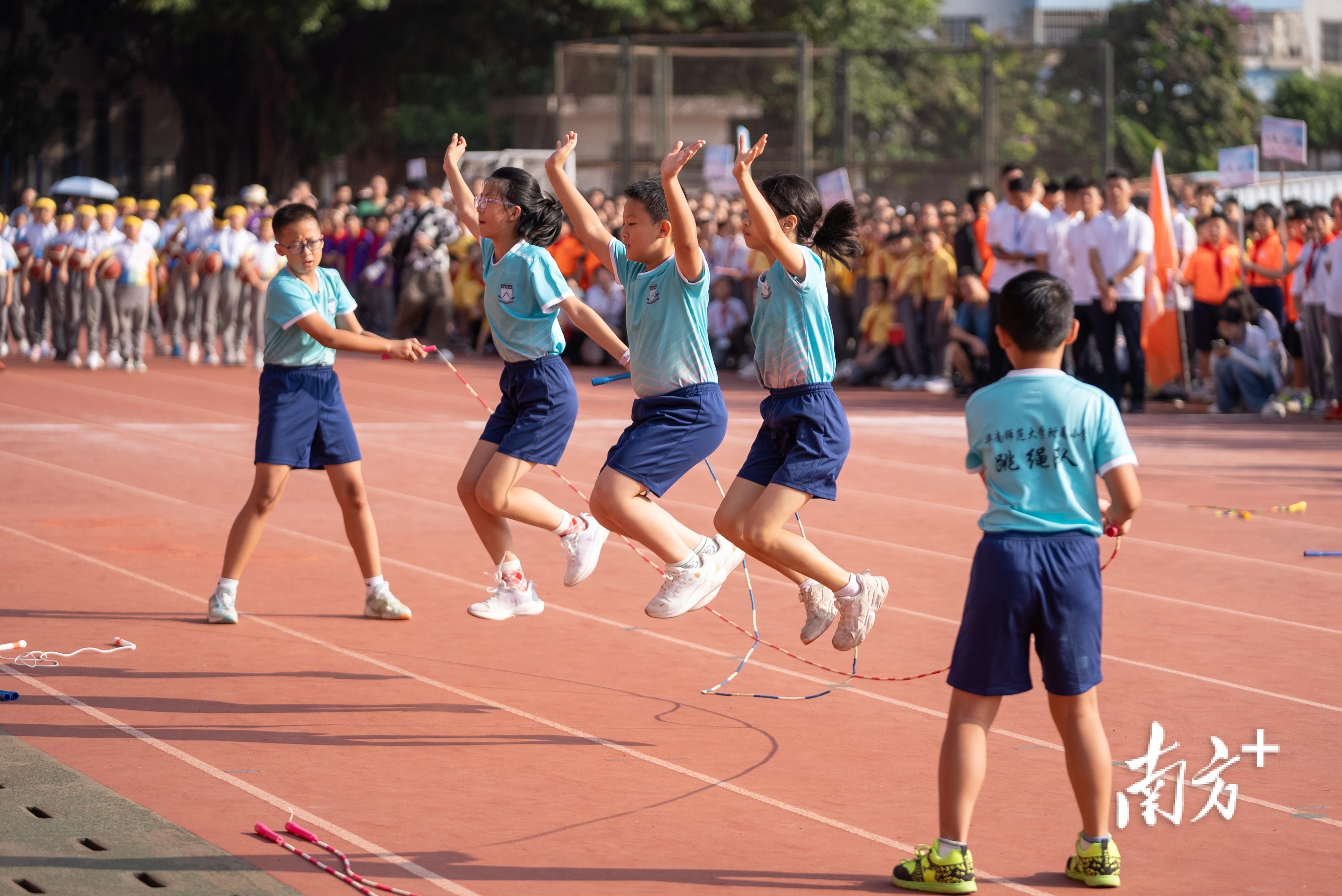 10月19日,华南师范大学附属小学2024年田径运动会开幕,中国男篮主教练郭士强、亚洲飞人苏炳添到现场为学生加油鼓劲。