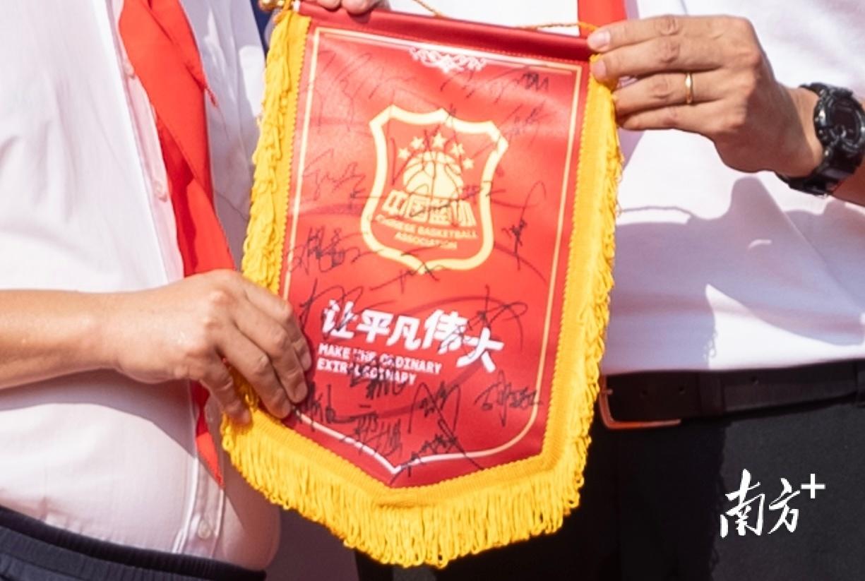 现场,郭士强还将中国男篮队员们签名的一面队旗送给学校,希望师生们继续发扬“更快、更高、更强——更团结”的奥运精神。